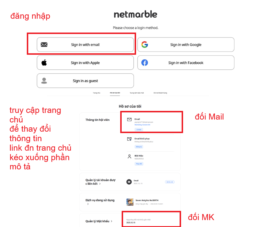 Thay đổi thông tin tại : https://members.netmarble.com/me/profile