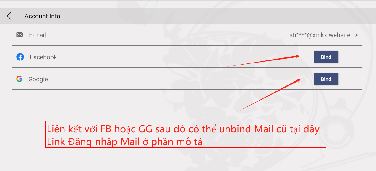 Đăng nhập Bluepoch ID Bind FB hoặc GG sau đó có thể hủy bỏ liên kết Mail và liên kết Mail khác Link Đăng nhập Mail : http://qmmail.cn