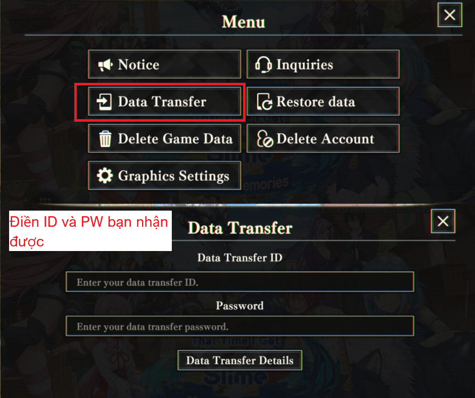 Đăng nhập: Data Transfer